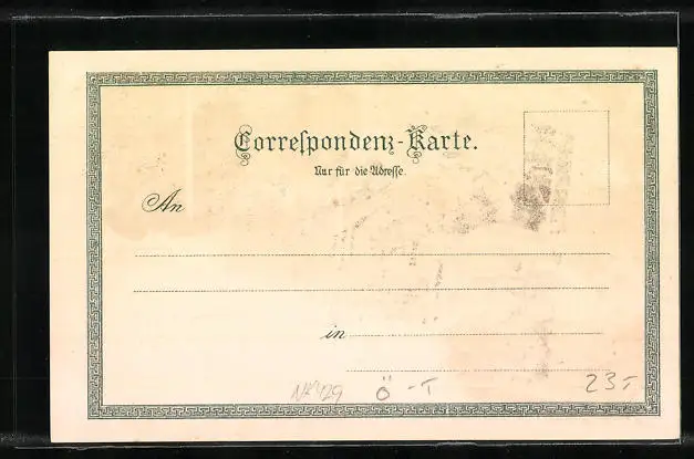 Personenbezogene Daten auf der Rückseite der Karte wurden durch blauen Textmarker unkenntlich gemacht. Die blauen Stellen sind auf die Vorderseite durchgeweicht und wirken sich negativ auf das Postkartenfoto aus