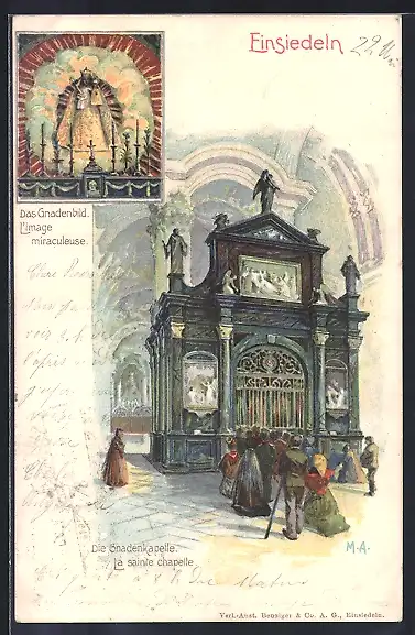 Lithographie Einsiedeln, Gnadenkapelle, Gnadenbild