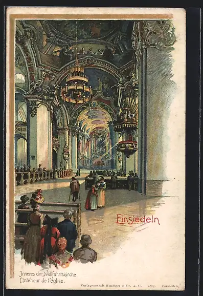 Lithographie Einsiedeln, Inneres der Wallfahrtskirche