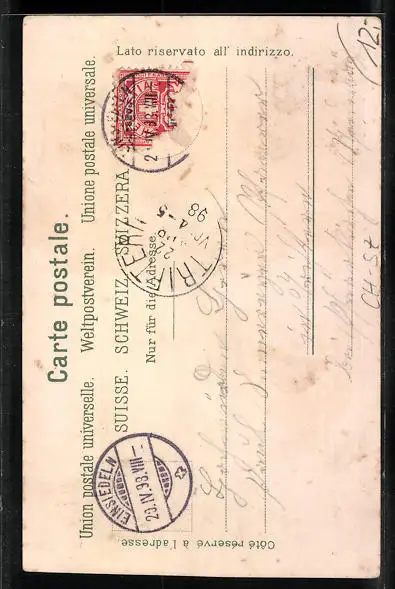 gelaufen 1898, rückseitig Klebe- und Papierreste, guter Zustand