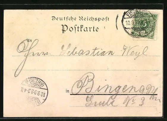gelaufen 1899, Eckknick oben rechts, guter Zustand