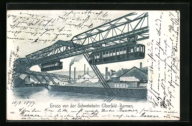 Lithographie Elberfeld-Barmen, An der Schwebebahn