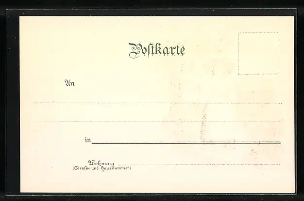 Personenbezogene Daten auf der Rückseite der Karte wurden durch blauen Textmarker unkenntlich gemacht. Die blauen Stellen sind auf die Vorderseite durchgeweicht und wirken sich negativ auf das Postkartenfoto aus