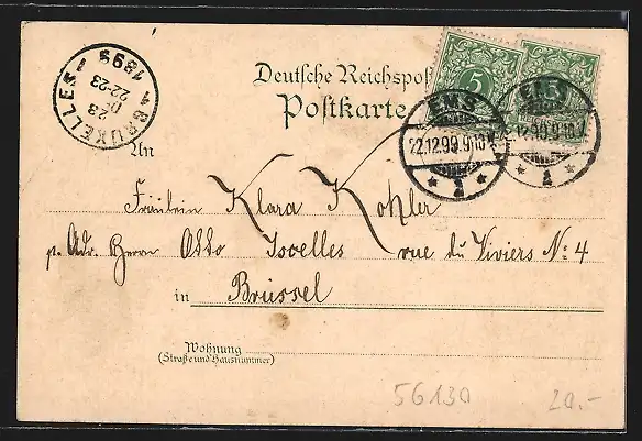 gelaufen 1899, Eckknick li. oben, guter Zustand