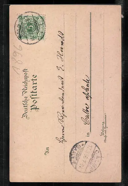 gelaufen 1896, Eckknick links unten, guter Zustand