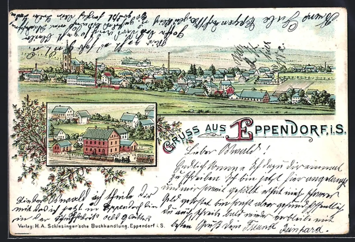 Lithographie Eppendorf i. S., Bahnhof, Ortspanorama