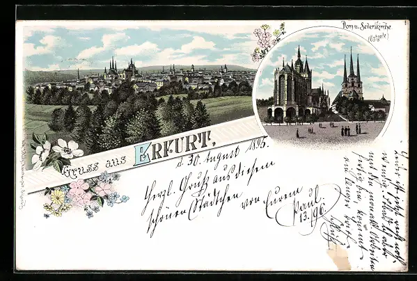 Lithographie Erfurt, Dom u. Severikirche