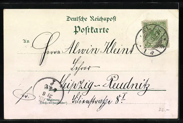 gelaufen 1900, Klebe- u. Papierreste unten re., guter Zustand