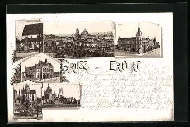 Lithographie Erfurt, Dom u. St. Severikirche, Dom Rückseite, Rathaus