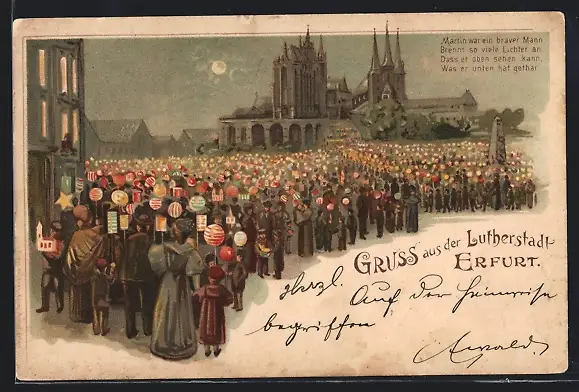 Lithographie Erfurt, Ortsansicht am St. Martinstag
