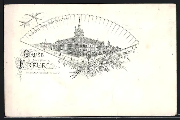 Lithographie Erfurt, Partie an der Kaiserl. Oberpostdirektion