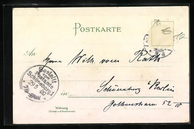 gelaufen 1900, Briefmarke entfernt, Eckknicke oben, minimaler Einriss re. oben, Stempelspur, guter Zustand