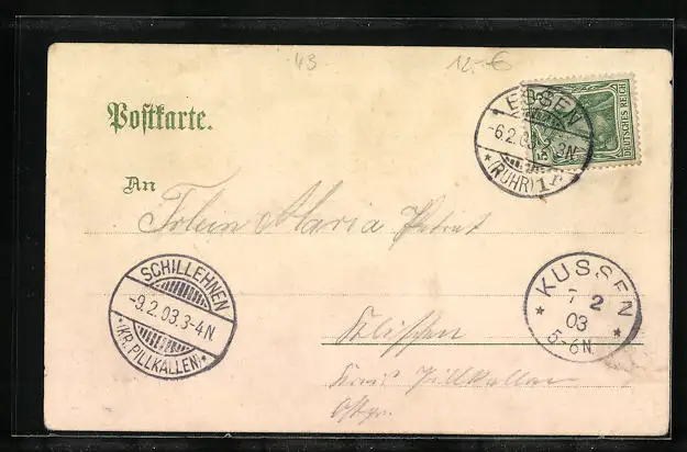 gelaufen 1903, Abriebspur li. oben und re. Kante, guter Zustand