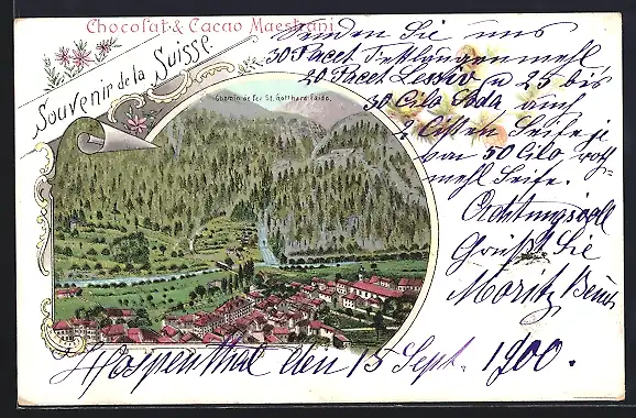 Lithographie Faido, Chemin de fer St. Gotthard Faido