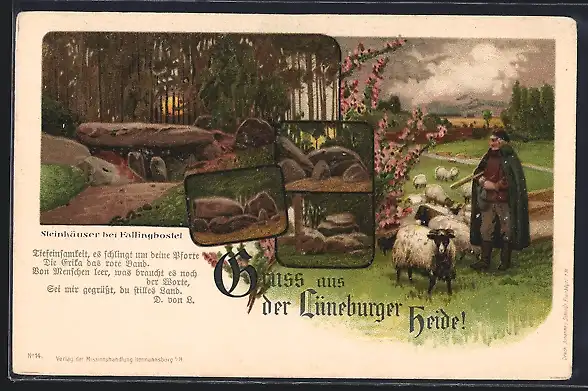 Lithographie Fallingbostel, Gesteinsformation Steinhäuser, Schäfer mit Herde