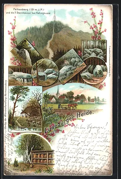 Lithographie Fallingbostel, Imkerei in der Lüneburger Heide