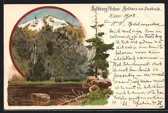 Lithographie Feldberg / Schwarzwald, Feldsee mit Seebuck