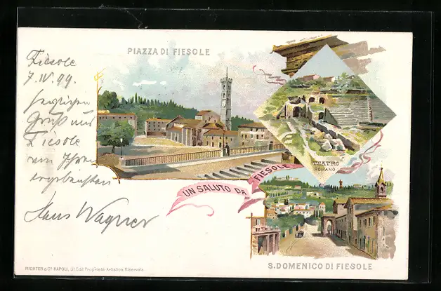 Lithographie Fiesole, Piazza, S. Domenico, Teatro Romano