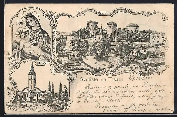 Lithographie Fiume, Tersatto, Panorama, Kirche, Mutter Jesu