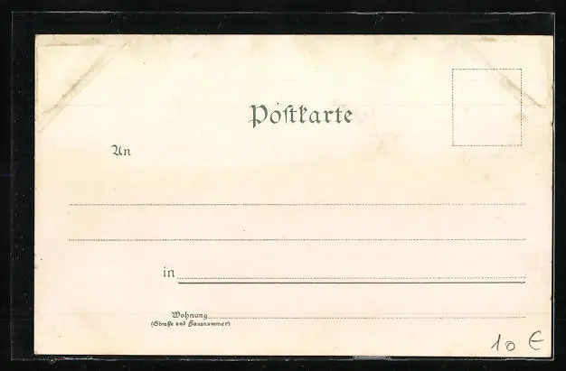 Personenbezogene Daten auf der Rückseite der Karte wurden durch blauen Textmarker unkenntlich gemacht. Die blauen Stellen sind auf die Vorderseite durchgeweicht und wirken sich negativ auf das Postkartenfoto aus