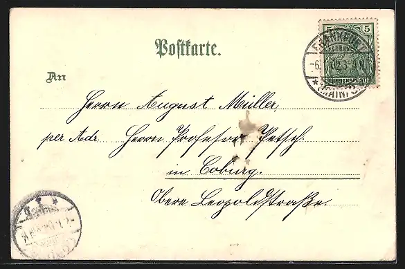 gelaufen 1902, Eckknick li. unten, guter Zustand