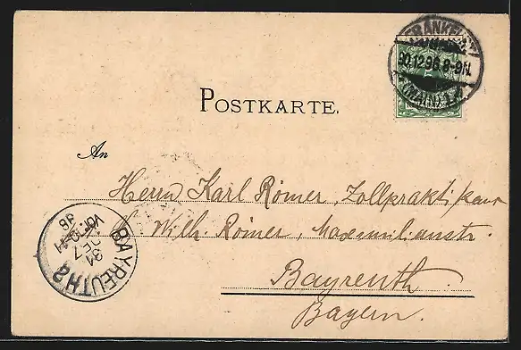gelaufen 1896, Ecken bestoßen, guter Zustand