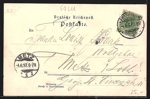 gelaufen 1897, Einriss li. Mitte, Albumspur re. unten, guter Zustand