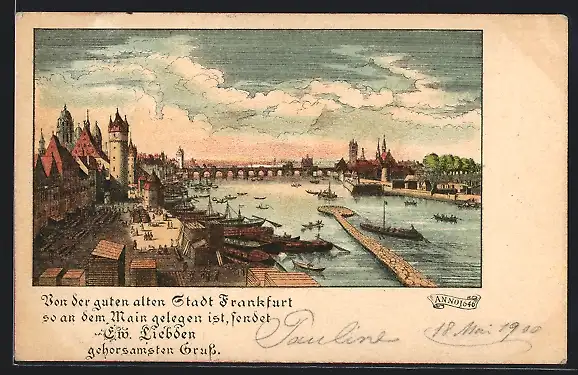 Lithographie Frankfurt, Stadtansicht Anno 1646 Von der guten alten Stadt...