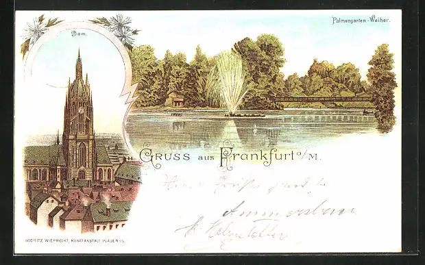 Lithographie Frankfurt-Westend, Palmengarten-Weiher