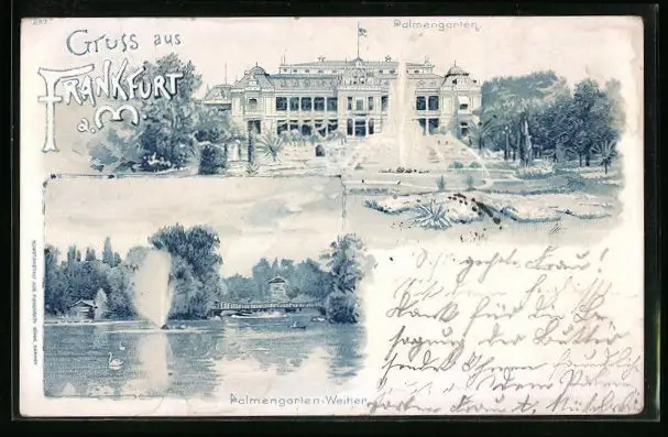 Lithographie Frankfurt-Westend, Palmengarten, Weiher
