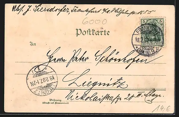 gelaufen 1907, Eckknick li. unten, guter Zustand