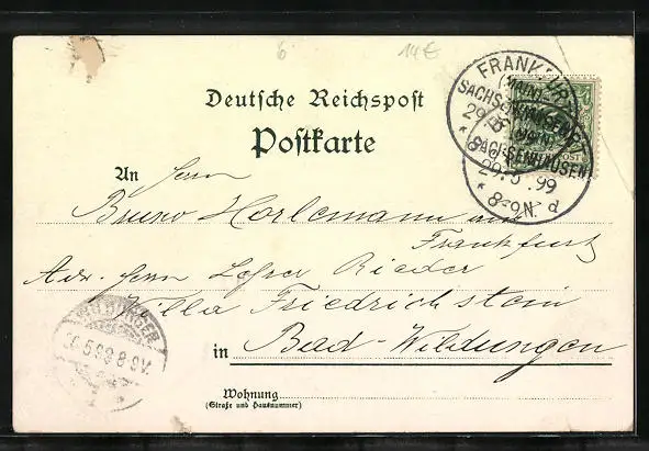 gelaufen 1899, Eckknick oben links, guter Zustand