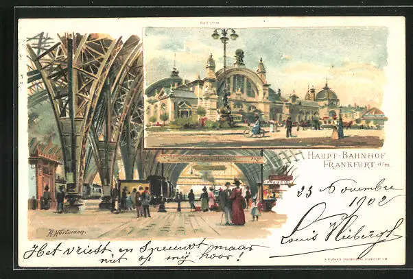 Lithographie Frankfurt a. M., Hauptbahnhof, Innenansicht