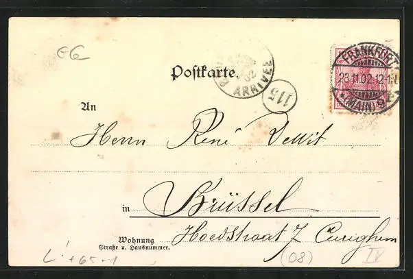 Personenbezogene Daten auf der Rückseite der Karte wurden durch blauen Textmarker unkenntlich gemacht. Die blauen Stellen sind auf die Vorderseite durchgeweicht und wirken sich negativ auf das Postkartenfoto aus