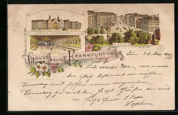 Lithographie Frankfurt a. M., Kaisersaal, Römerberg, Zeil