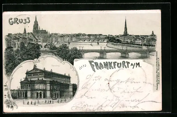 Lithographie Frankfurt a. M., Opernhaus, Teilansicht