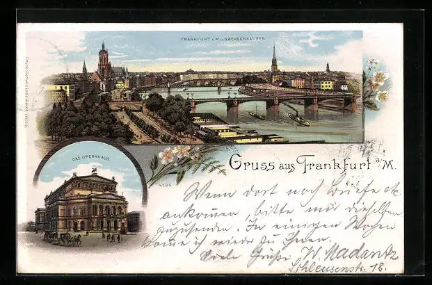 Lithographie Frankfurt a. M., Opernhaus, Totalansicht