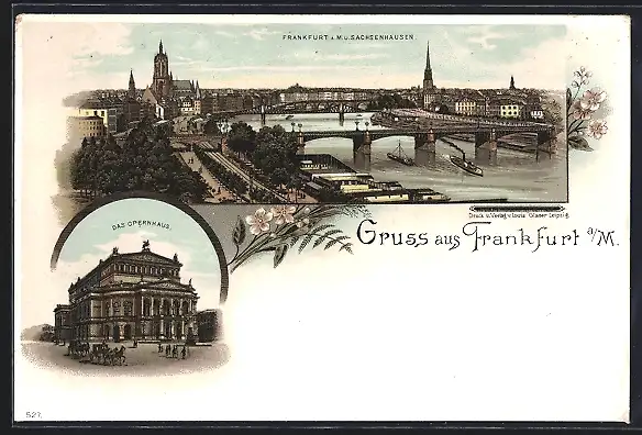 Lithographie Frankfurt a. M., Opernhaus, Totalansicht