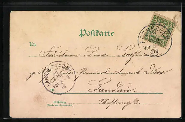 gelaufen 1899, Ecken beschnitten, guter Zustand