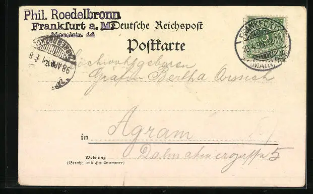 gelaufen 1898, Eckknick re. oben, Einriss mittig unten, guter Zustand