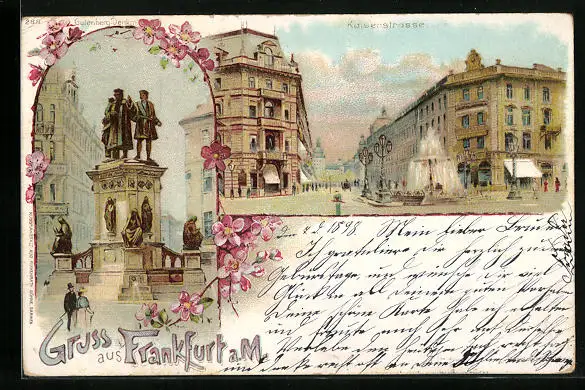 Lithographie Frankfurt a. M., Ortsansicht mit Kaiserstrasse