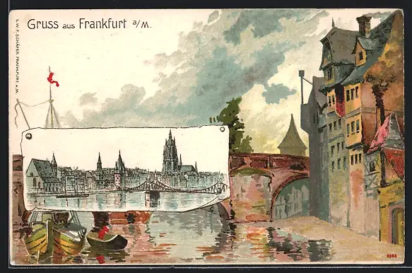 Lithographie Frankfurt a. M., Teilansicht, Ortspartie