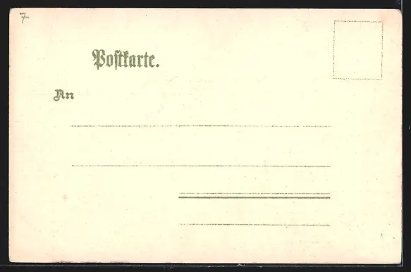 Personenbezogene Daten auf der Rückseite der Karte wurden durch blauen Textmarker unkenntlich gemacht. Die blauen Stellen sind auf die Vorderseite durchgeweicht und wirken sich negativ auf das Postkartenfoto aus