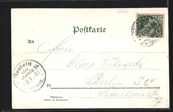 gelaufen 1901, Eckknick unten li., guter Zustand