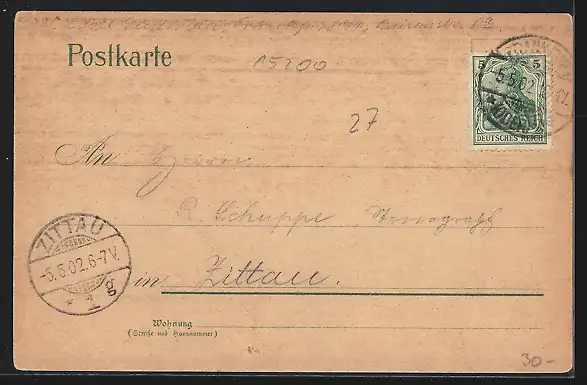gelaufen 1902, Eckknick oben re., guter Zustand