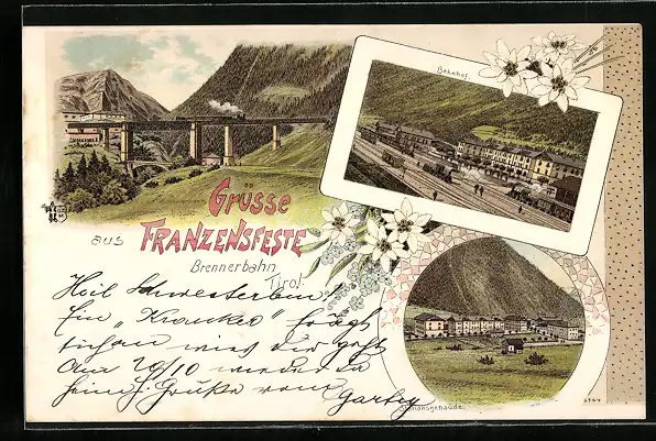 Lithographie Franzensfeste, Bahnhof, Stationsgebäude, Brennerbahn