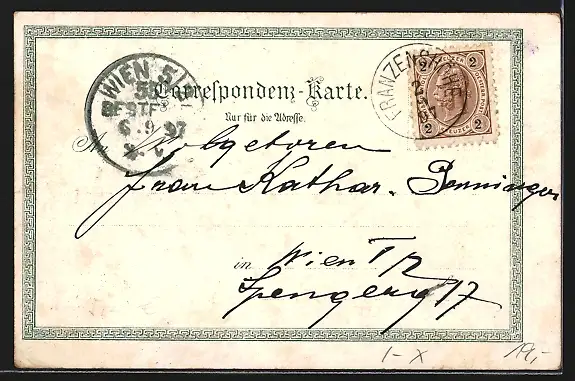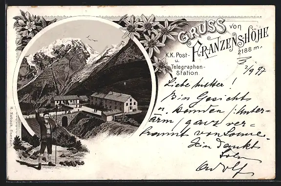 Lithographie Franzenshöhe, K. K. Post- und Telegraphenstation