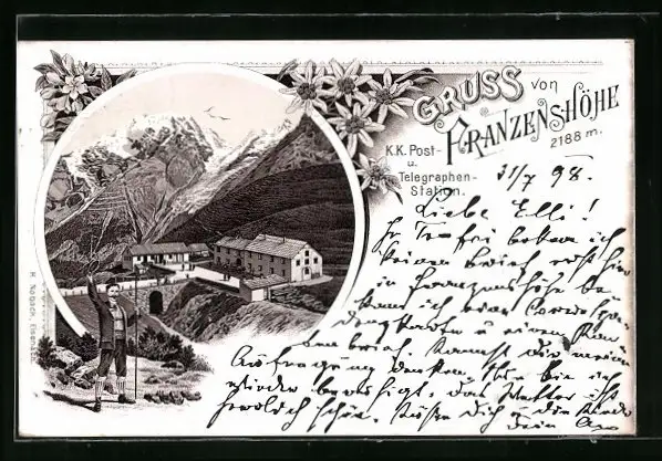 Lithographie Franzenshöhe, Panorama mit Wanderer