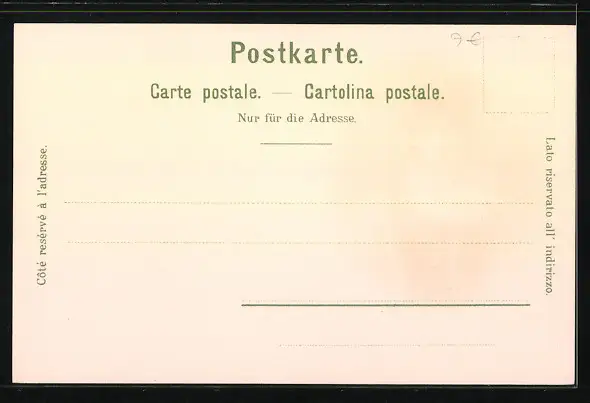 Personenbezogene Daten auf der Rückseite der Karte wurden durch blauen Textmarker unkenntlich gemacht. Die blauen Stellen sind auf die Vorderseite durchgeweicht und wirken sich negativ auf das Postkartenfoto aus