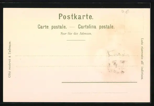 Personenbezogene Daten auf der Rückseite der Karte wurden durch blauen Textmarker unkenntlich gemacht. Die blauen Stellen sind auf die Vorderseite durchgeweicht und wirken sich negativ auf das Postkartenfoto aus